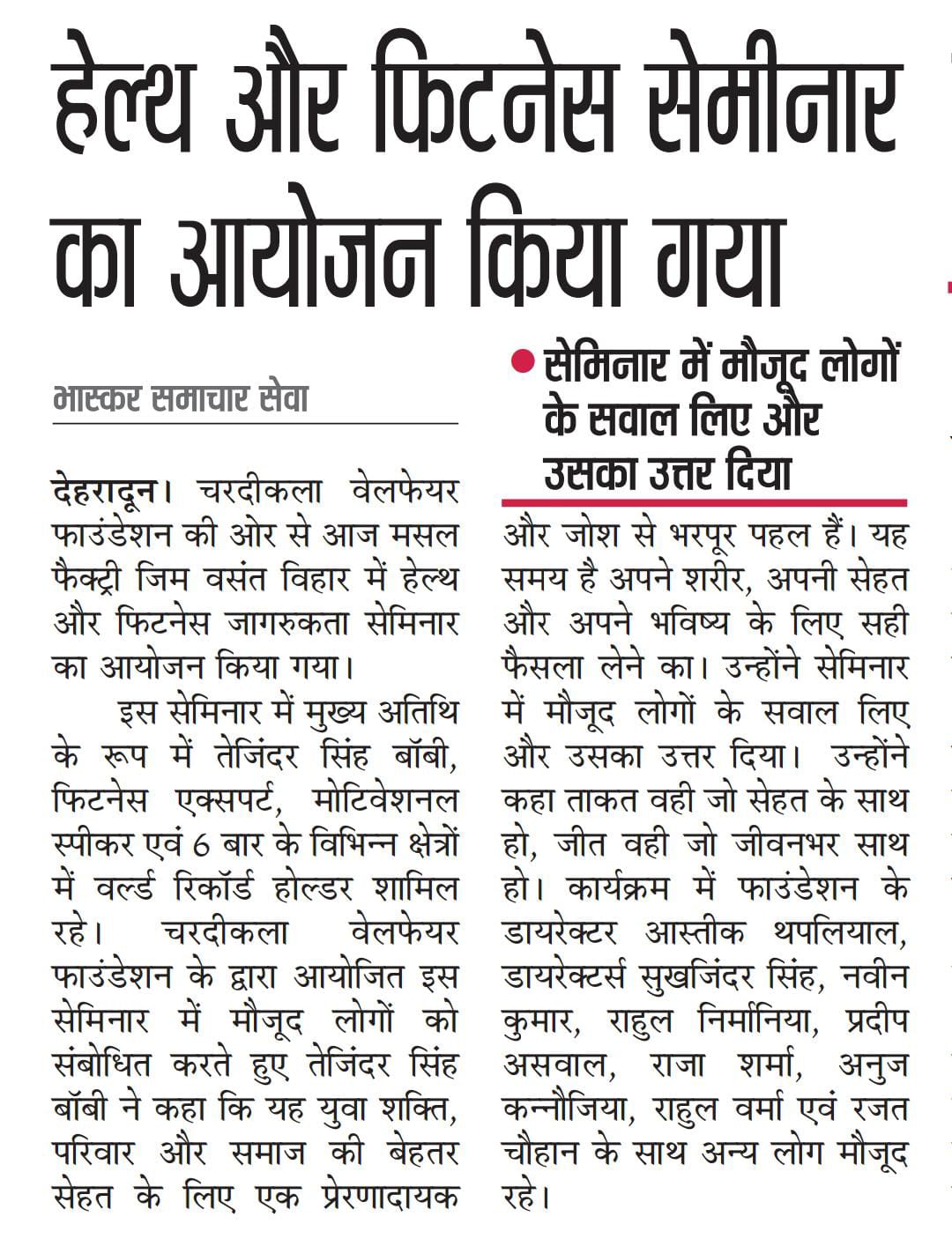 Newspaper Links - Health & Fitness Seminar at Dehradun - 01/03/2026