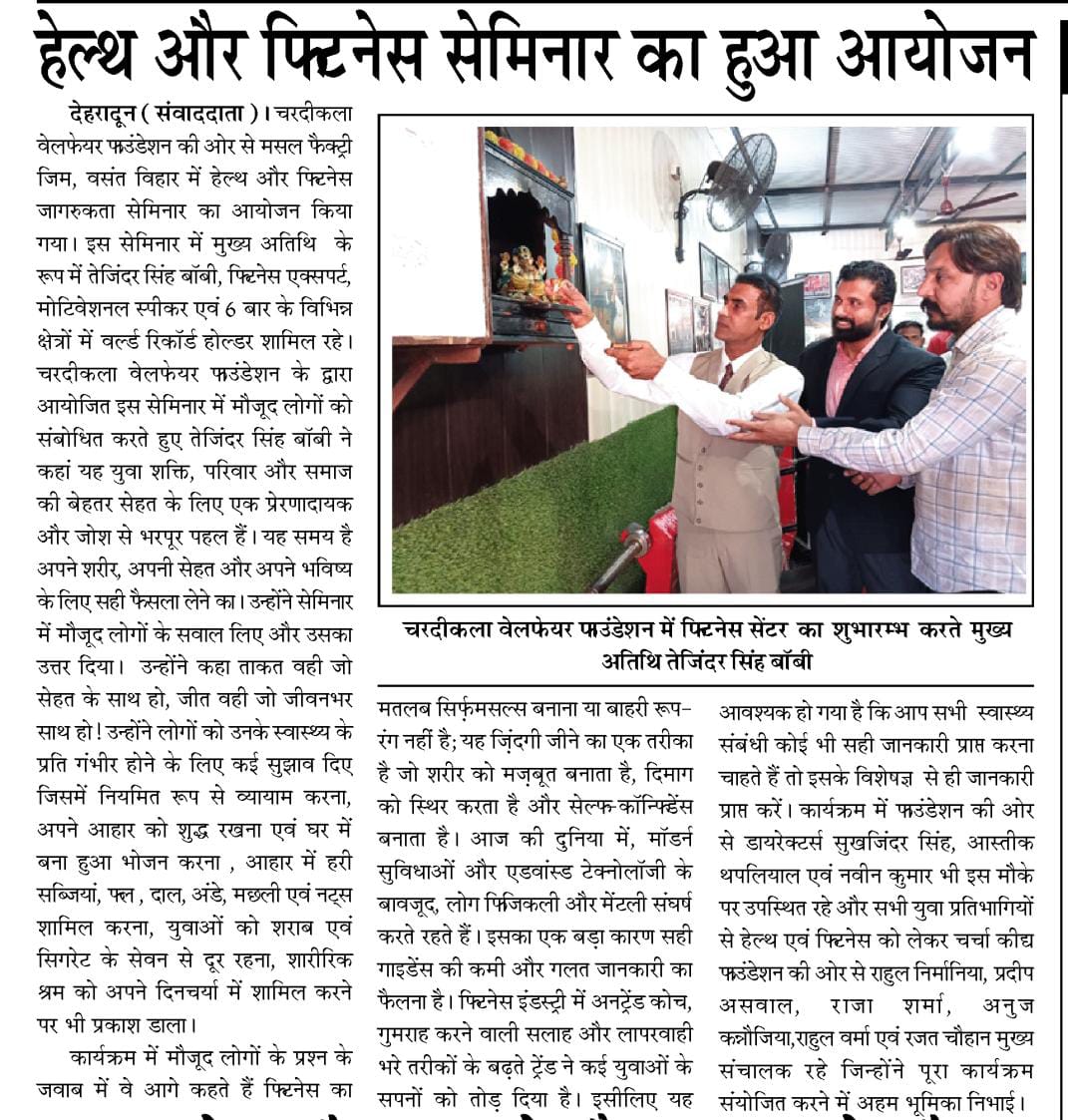 चरदीकला वेलफेयर फाउंडेशन देहरादून की ओर से हेल्थ और फिटनेस सेमीनार का आयोजन किया गया।
